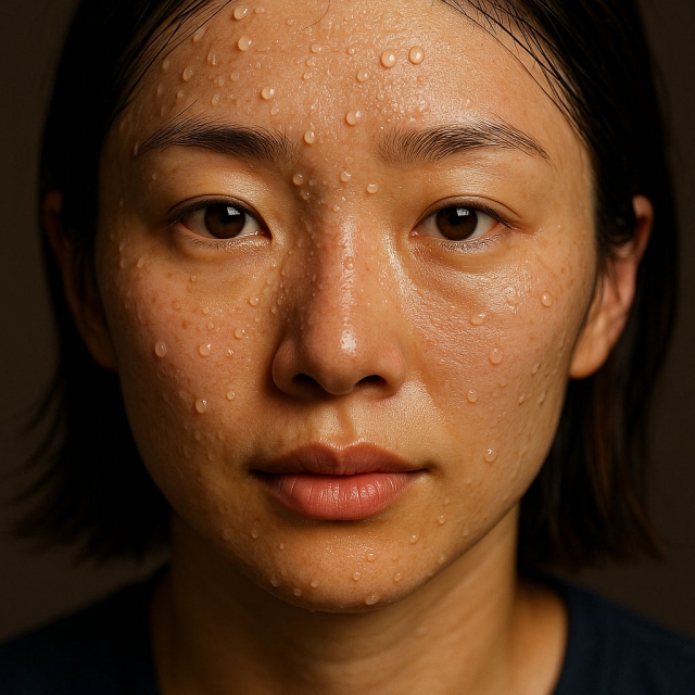 顔は常に露出していて紫外線や乾燥といった影響を受けやすいため、毛穴からの皮脂と汗腺からの汗とで皮膚を保護し、体温調整も行うといった役割を担っています。